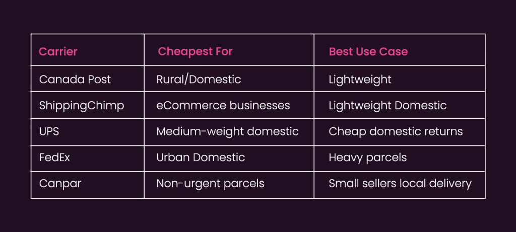 Which Shipping Carrier is cheapest for Canadian small businesses?